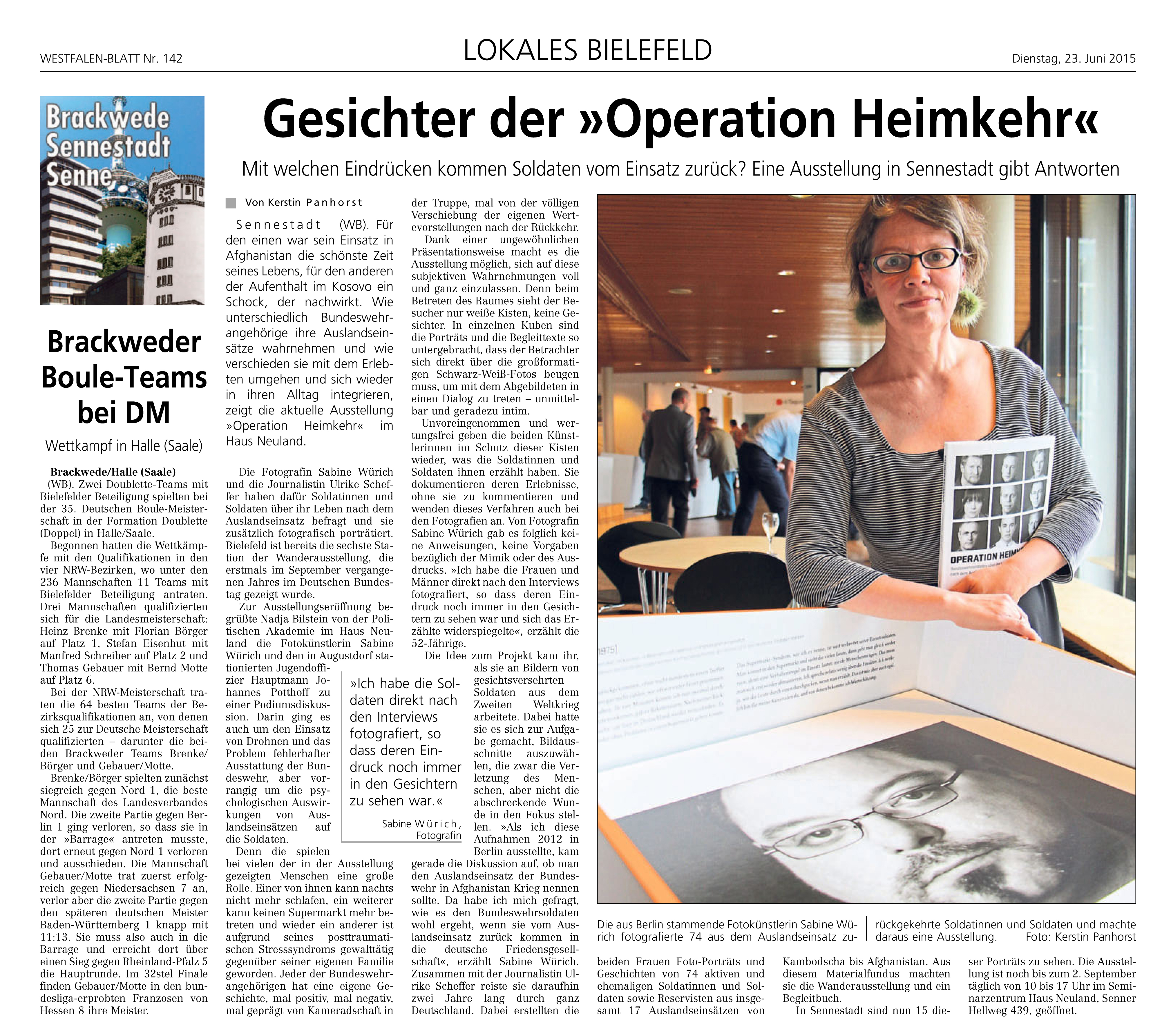 Westfalen-Blatt, zur Ausstellungseröffnung im Haus Neuland, Bielefeld (23.06.2015)