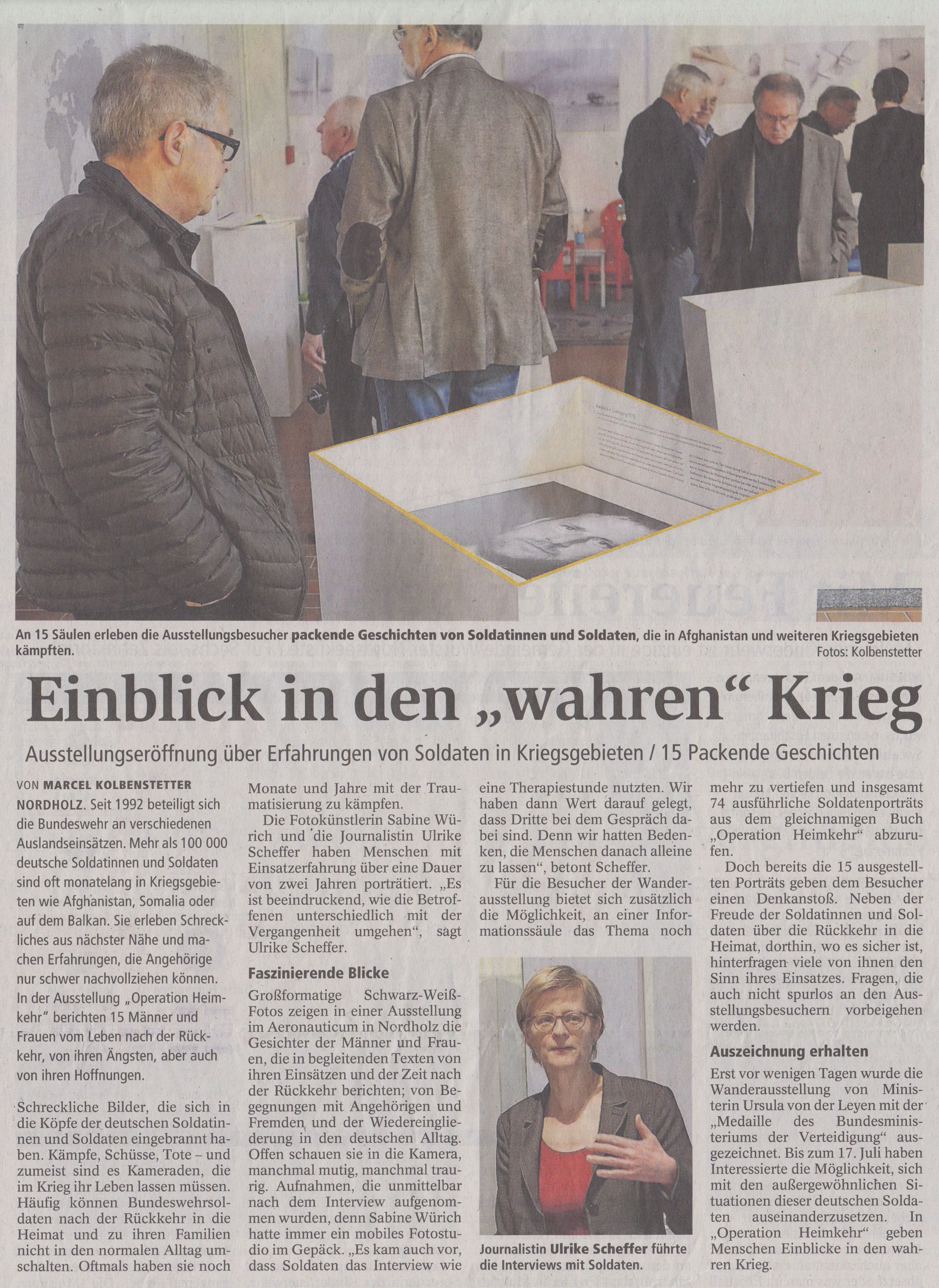 Cuxhavener Nachrichten, Bericht über die Ausstellungseröffnung in Nordholz, (18.3.2016) hier veröffentlichtes Foto von Marcel Kolbenstetter